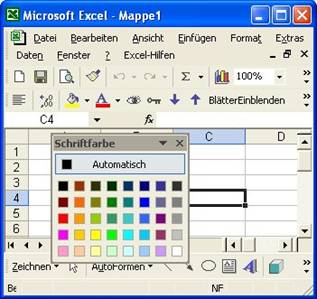 Wenn die Farbpalette für mehrmaligen Gebrauch geöffnet bleiben soll, so kann man sie nach dem Aufklappen an der grauen Griffleiste mit der Maus „Abreißen“. Sie steht dann als freies Grafikobjekt zur Verfügung.