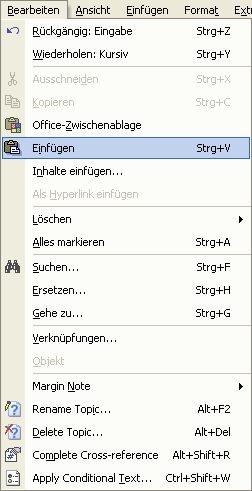 Abbildung 12, Aufgeklapptes Menü "Bearbeiten", Befehl "Einfügen" ist ausgewählt