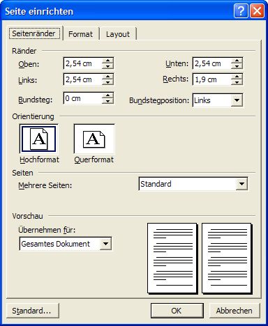 Abbildung 27, Das Dialogfeld Seite einrichten