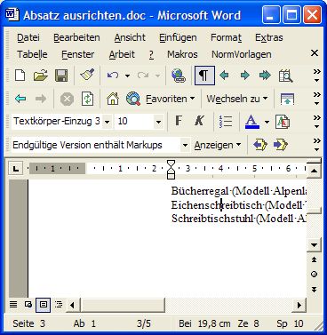 Absatzeinzüge werden innerhalb der Seitenränder vorgenommen. Eine