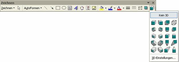 (Symbolleiste aufrufen über 3D-Art in Zeichnen-Symbolleiste, Abbildung 48). Es öffnet sich eine Palette mit Werkzeugen zur 3D-Bearbeitung, die auch den Aufruf einer weiteren Symbolleiste erlaubt.