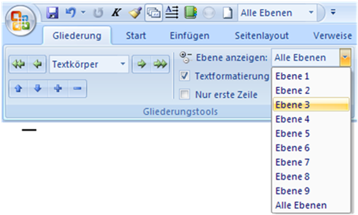 Gliederung), können Sie auswählen, bis zu welcher Gliederungsebene