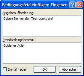 Geben Sie unter Eingabeaufforderung einen Text ein, aus dem der Anwender entnehmen kann, welche Art Eingabe von ihm verlangt wird („Geben Sie hier den Treffpunkt ein!“).