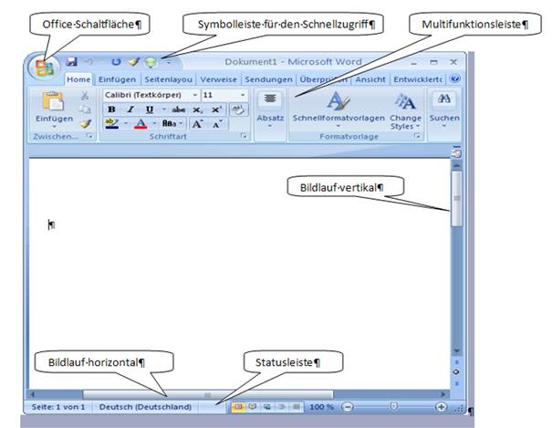 Abbildung 1 zeigt Ihnen die wichtigsten Objekte des WORD Anwendungsfensters.