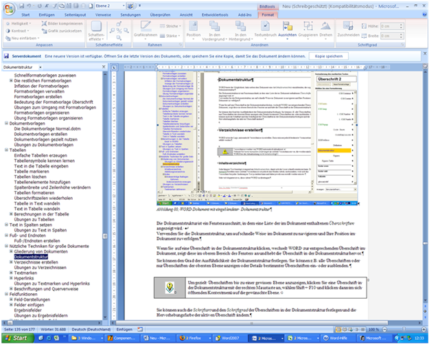 Abbildung 80, WORD Dokument mit eingeblendeter Dokumentstruktur