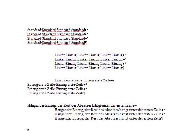 Nachfolgend sehen Sie in Abbildung 16 Absätze mit unterschiedlichen Einzügen.