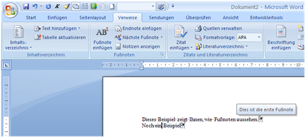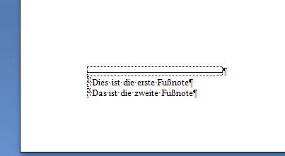 Am Fuß des Dokuments werden die Fußnoten aufgelistet. Bei Änderungen der Reihenfolge korrigiert Word automatisch die Nummerierung.