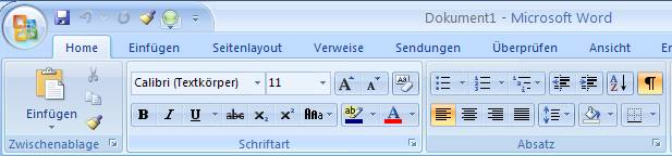 Befehle werden in sogenannten Gruppen in einem Register auf der Multifunktionsleiste angeordnet.