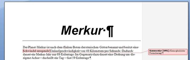 Kommentare werden vorzugsweise als Sprechblasen am rechten Dokumentrand angezeigt.