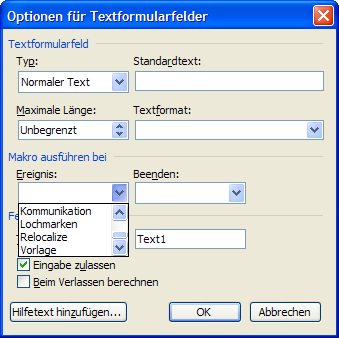 Das Eintreten in ein Formularfeld oder auch das Verlassen eines Formularfeldes kann dazu benutzt werden, einen Makro zu starten.