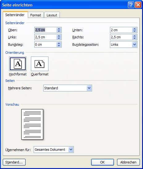Suchtext: Ändern oder Festlegen von Seitenrändern