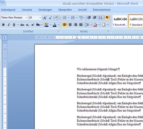 Absatzeinzüge werden innerhalb der Seitenränder vorgenommen.