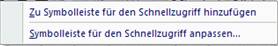Ein Rechtsklick auf ein Symbol in der Multifunktionsleiste öffnet ein kleines Dialogfenster und erlaubt das Hinzufügen dieses Befehls zur Symbolleiste für den Schnellzugriff.