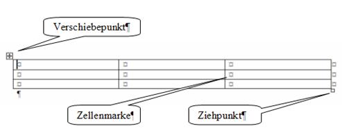 Am Verschiebepunkt können Sie die Tabelle mit der Maus fassen und an eine beliebige Position in Ihrem Dokument ziehen, am Ziehpunkt können Sie Zeilenhöhen und Spaltenbreiten der Tabelle verändern.